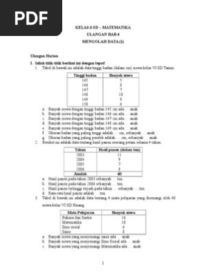 Pdf Soal Matematika Kelas 6 Sd Bab 4 Pengolahan Dan Penyajian
