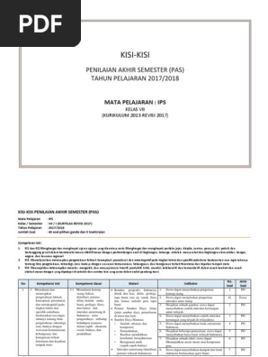 Download Kisi Kisi Soal Ips Kelas 8 Semester 1 K13 Revisi 2018