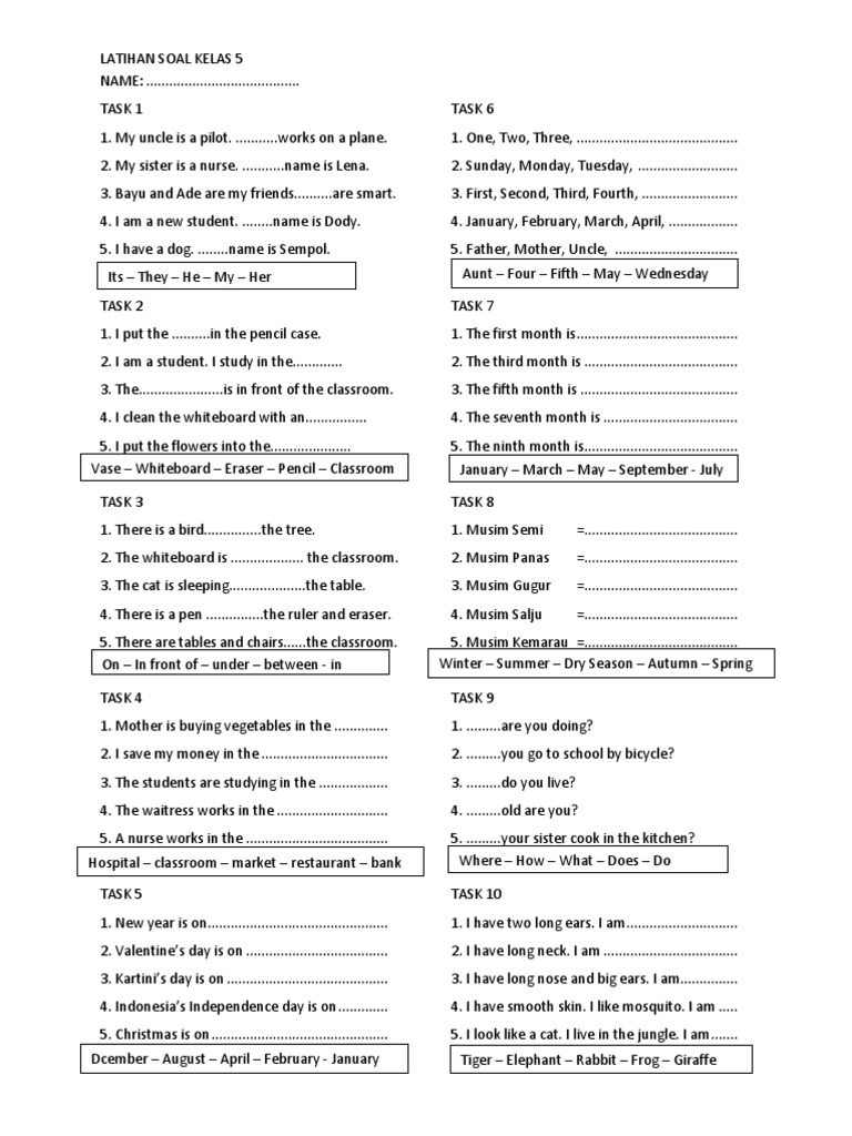 Contoh Soal Isian Bahasa Inggris Sd Kelas 5 Bank Soal Ujian
