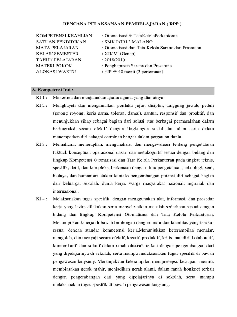 Rpp Otomatisasi Tata Kelola Sarana Dan Prasarana Kelas Xi Smk