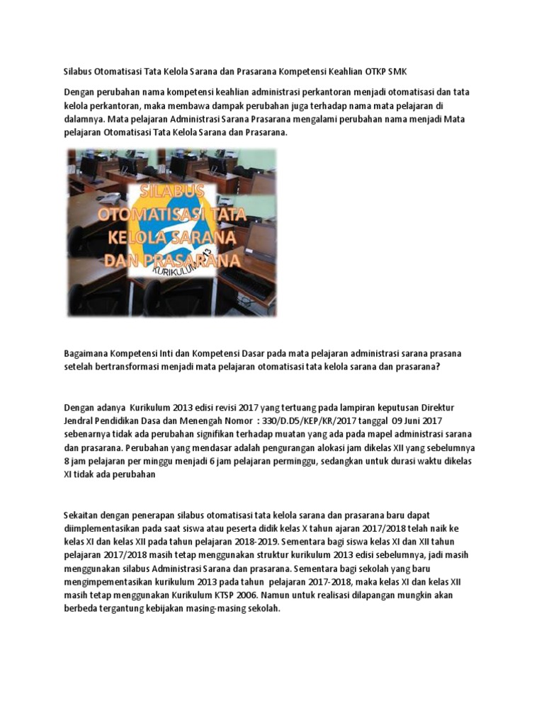 Silabus Otomatisasi Tata Kelola Sarana Dan Prasarana Kompetensi