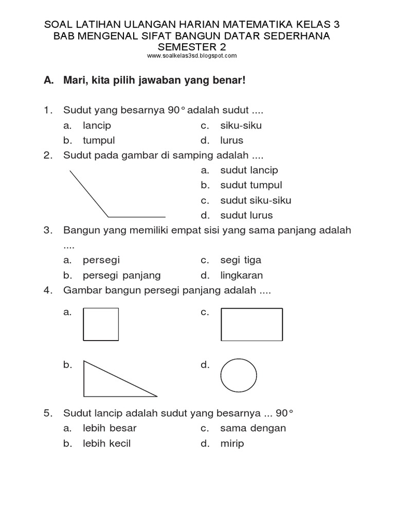 Soal Uh Matematika Kelas 3 Bab Sifat Bangun Datar Semester 2
