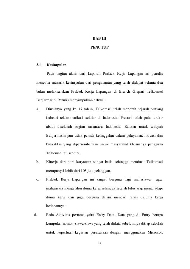 Contoh Bab Penutup Laporan Pkl Kesimpulan Saran Contoh Bab