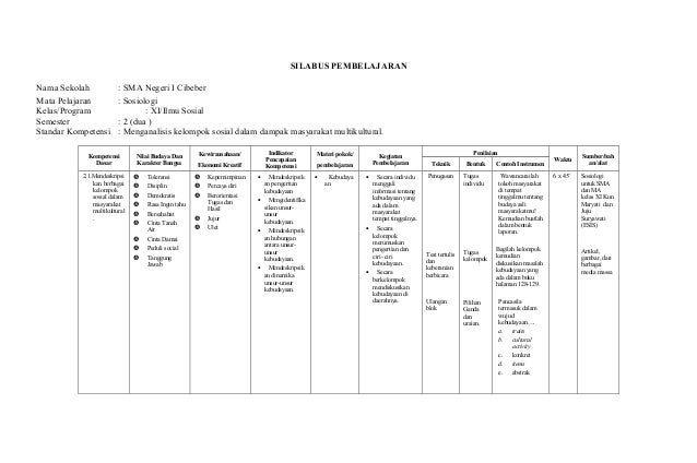 Silabus Rpp Prota Prosem Kkm Sosiologi Kelas Xi Sma K13 Revisi