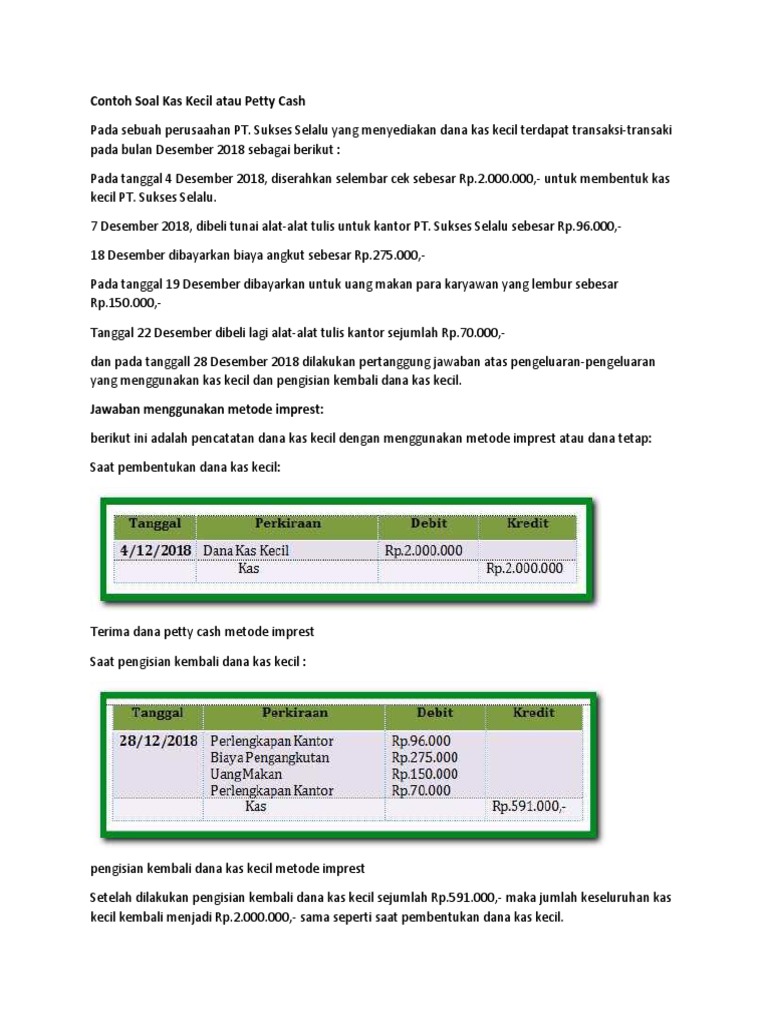Lengkap Contoh Soal Dan Metode Pencatatan Kas Kecil
