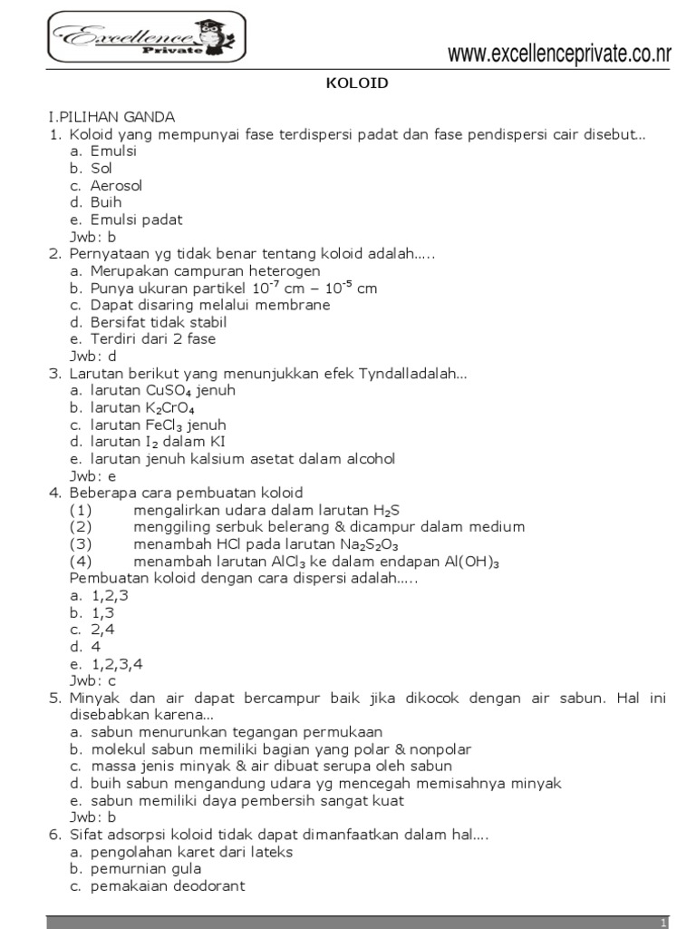 Kumpulan Soal Kimia Sma Kelas 11 Tentang Koloid Dan Kunci Jawabannya Myrightspot Com