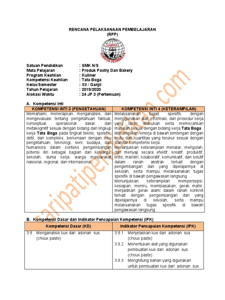 Rpp Produk Pastry Dan Bakery 11 Smk 1