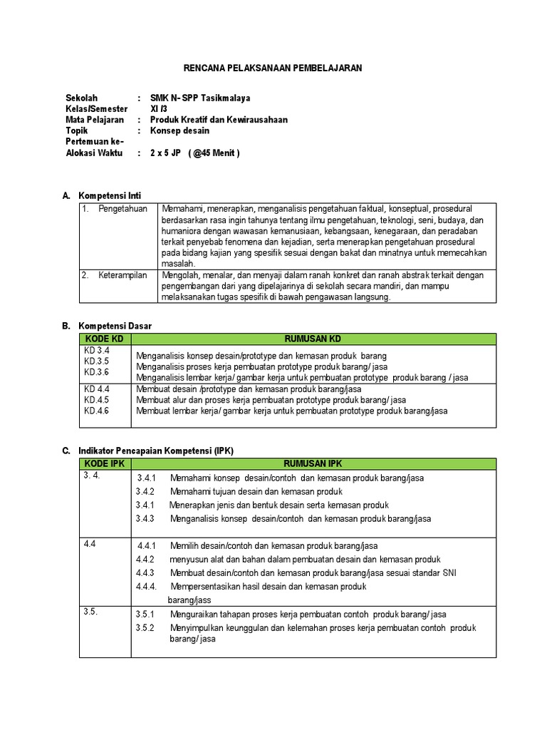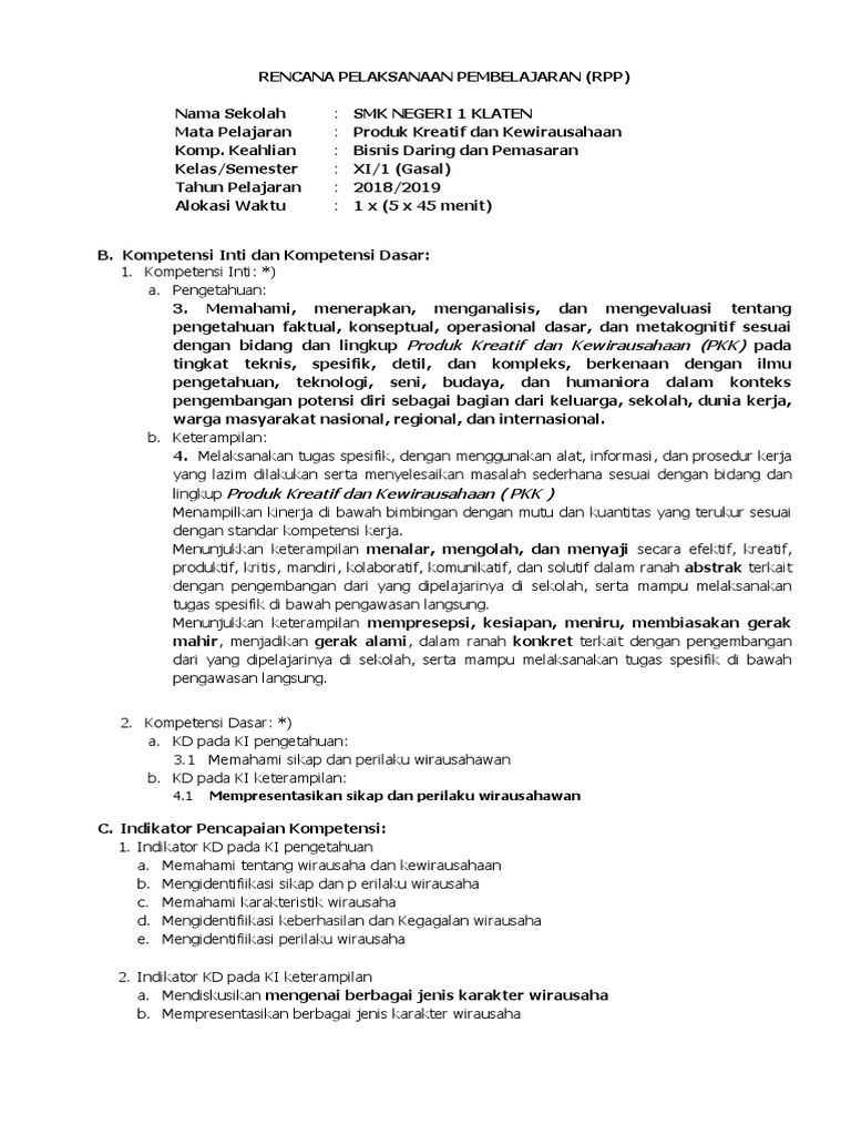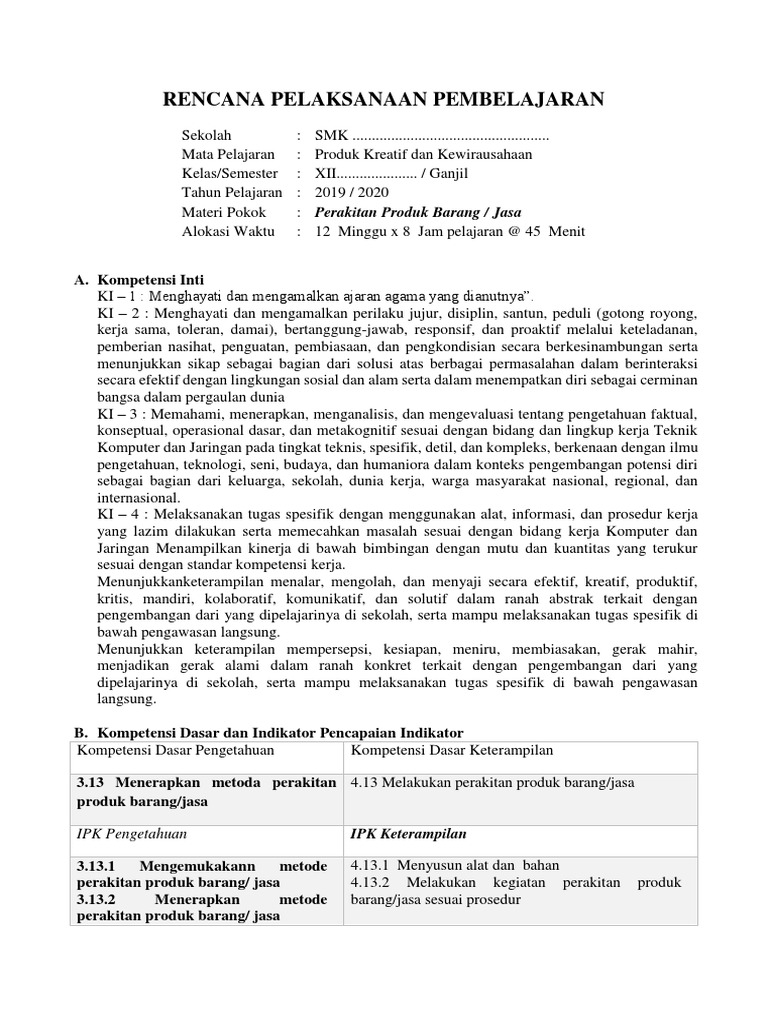 Download Rpp Produk Kreatif Dan Kewirausahaan Smk Kurikulum 2013 Revisi 2017 2018 Kurikulum Belajar Kreatif