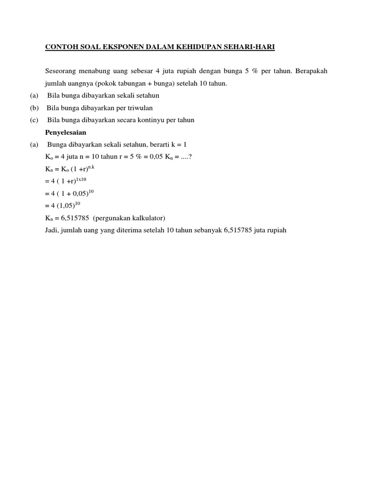 Kumpulan Contoh Soal Contoh Soal Eksponen Dalam Kehidupan Cute766